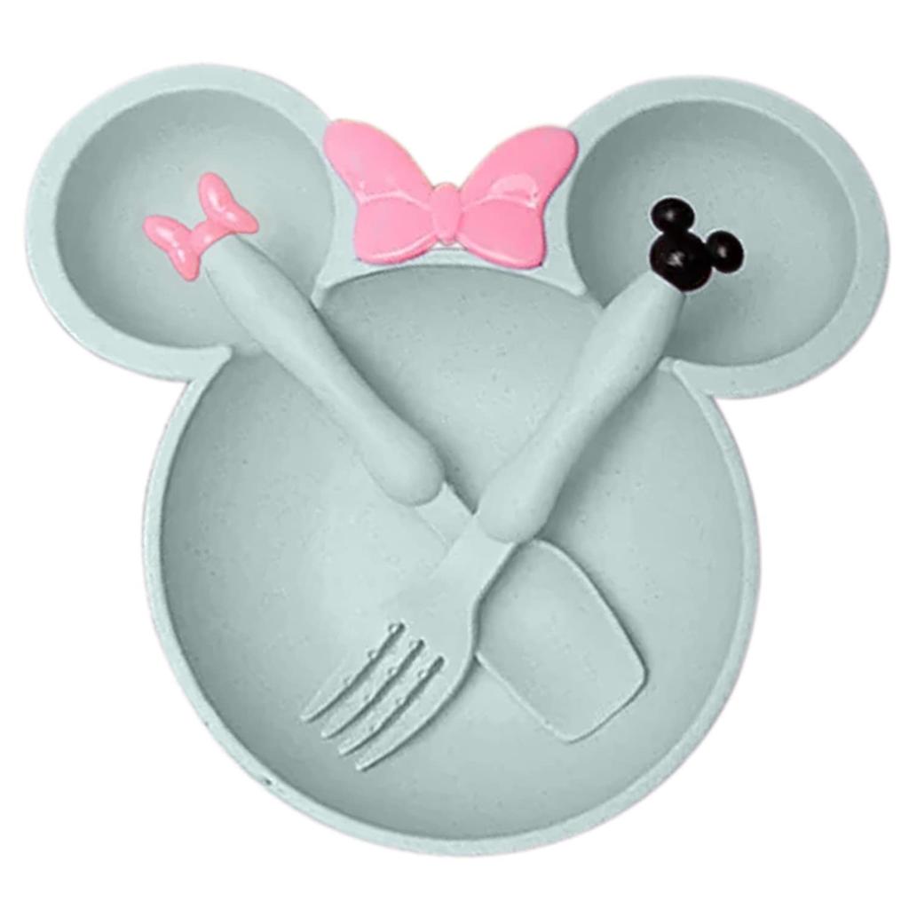 Minnie Tableware Tableware Set 3 Piece Set Plastic Spoon Fork Children Toddler Plate Bowl Tableware Plate Plate Set Children's Children's (Green)