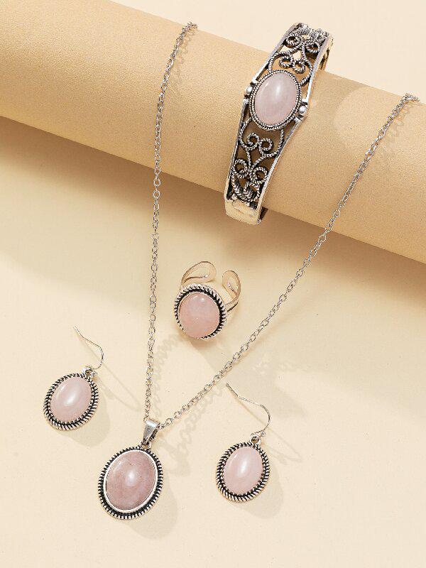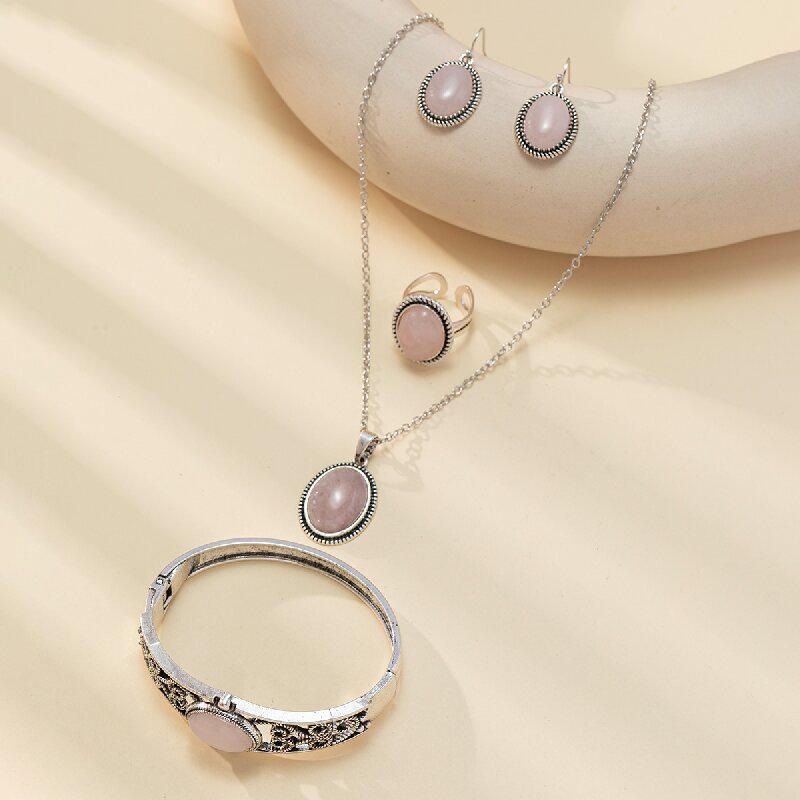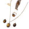 European-American Ethnic Style Jewelry Set: Tiger's Eye Necklace, Earrings, Ring, Bracelet