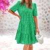 Women's Fashion Summer Solid Color V Neck Short Sleeved Beach Vacation A-line Dress