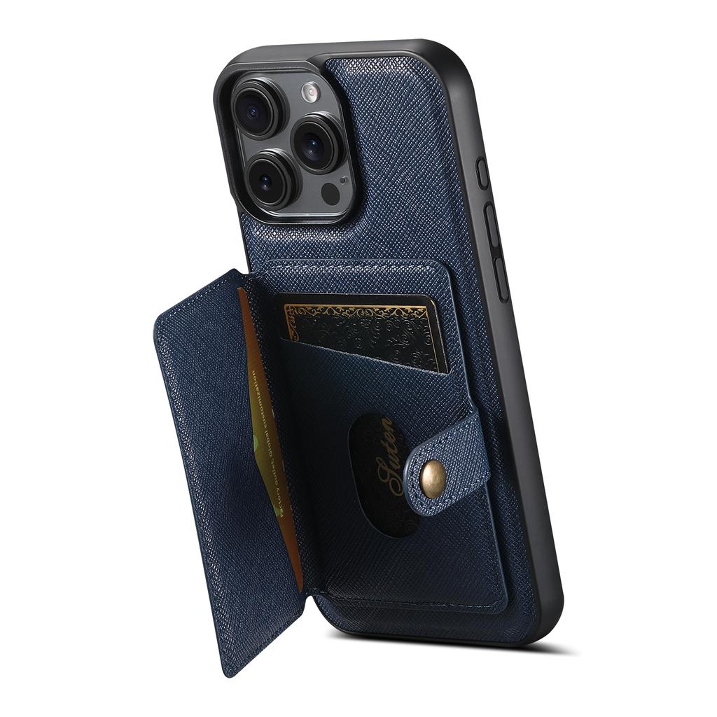 SUTENI H20 For iPhone 16 Pro Magnetic Case Cross Texture Phone Back Cover with Detachable Card Holder