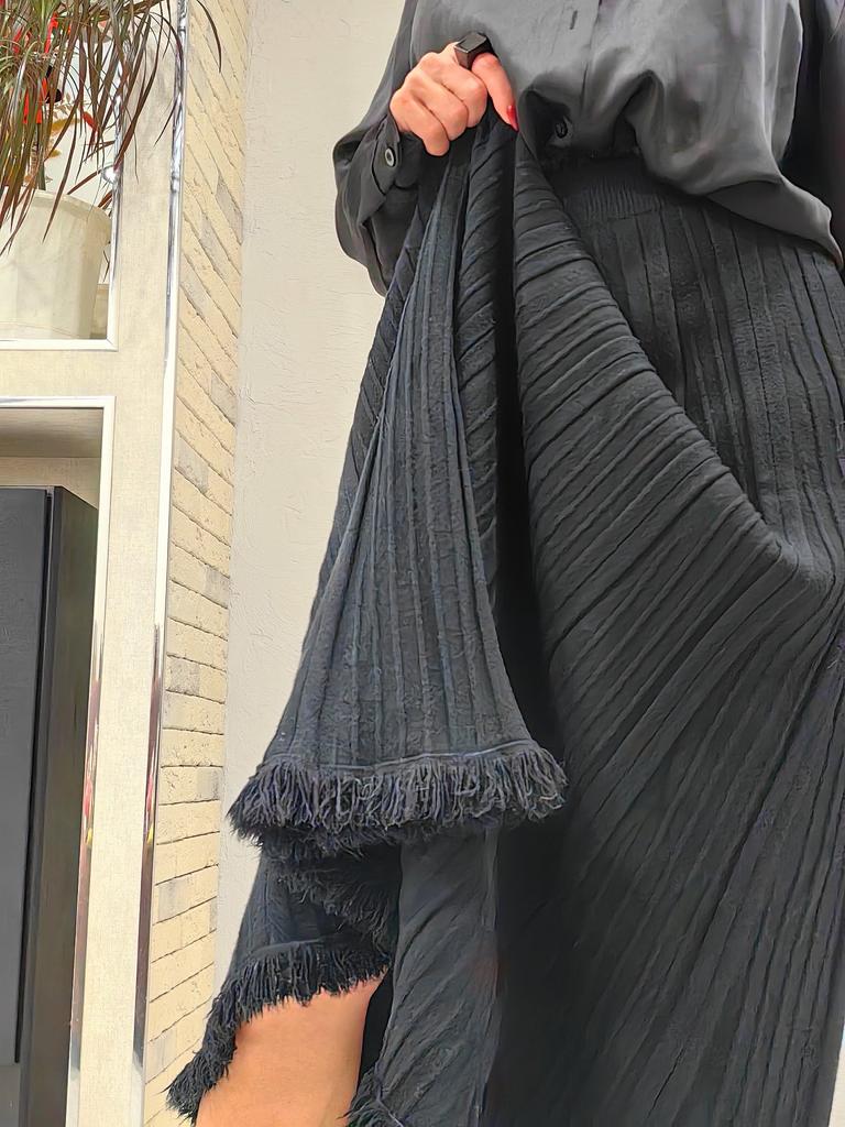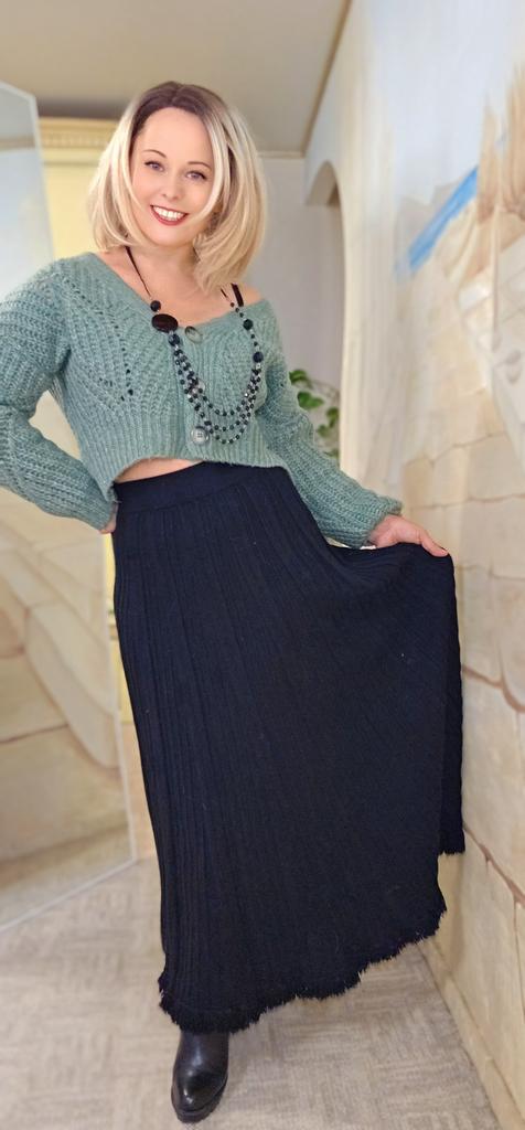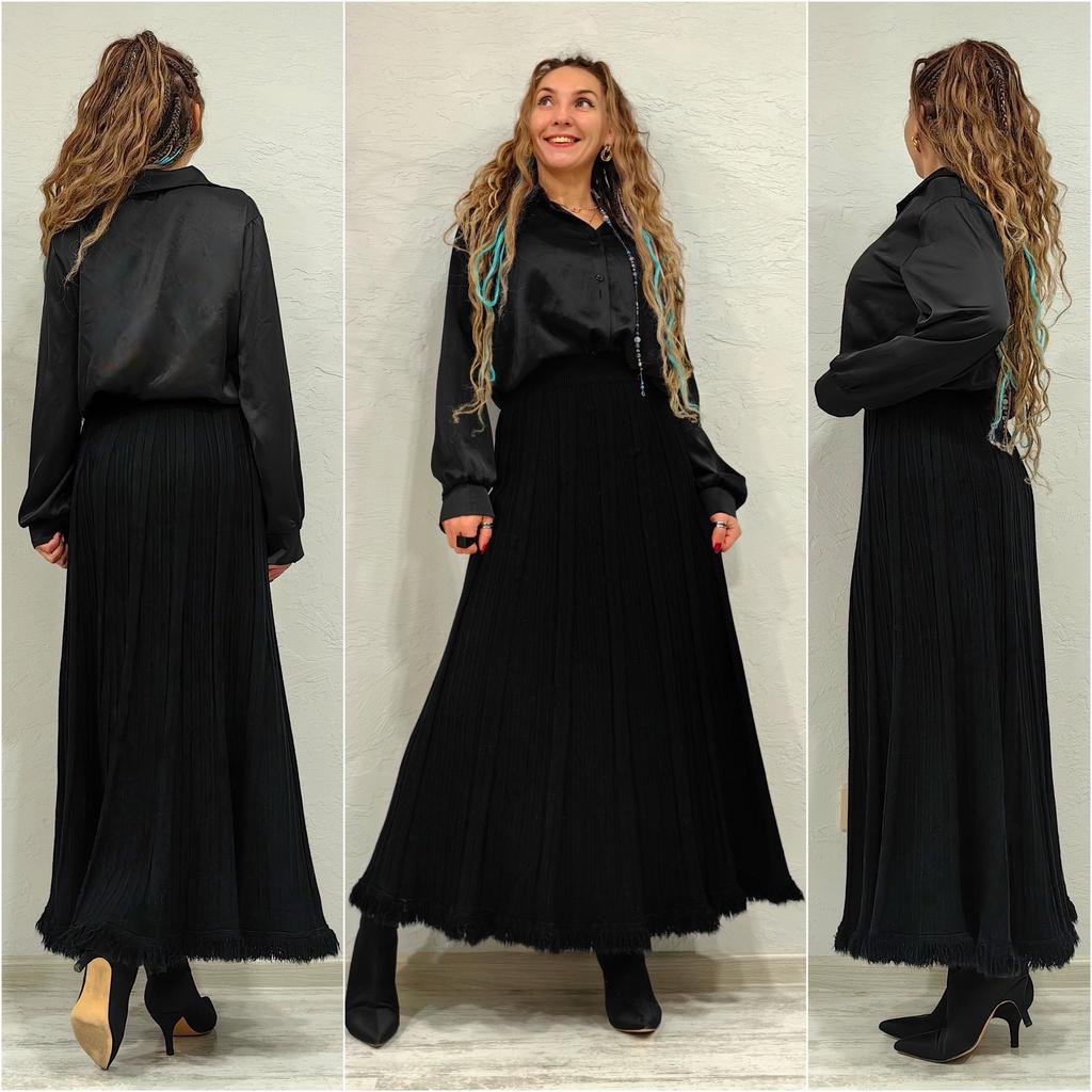 Korean Fashion Autumn Winter Women Maxi Long Skirt High Waist Beige Black Knitting Pleated Skirt Knitted Tassel Elegant Feminine Skirts