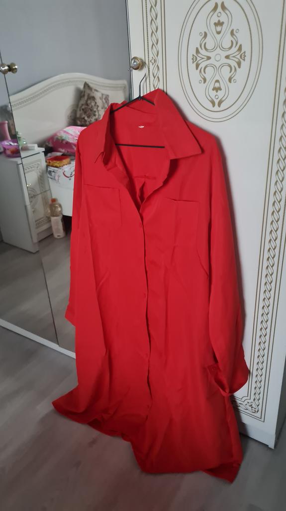 Women's Long-sleeved Lapel Simple Loose Knee-length Shirt Dress
