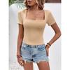 Ruudukaelusega T-särk Basic lühikeste varrukatega Crop Top naiste ribiga T-särk Casual Tank Top Slim Naiste Crop Top mood T-särk Y2k Streetwear