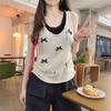 Fake Two-piece Color-blocking Bow Vest for Women Spicy Girl Style Rolled-edge and Ripped Short Knitted Thin Top with Design Sense In Summer