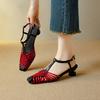 2024 High Heels Women's Fashion Thin Straps Weave Roman Sandals Printed Leather Heels Bohemian Shoes Soft Sole Mid-Heel Sandals