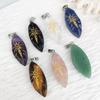 Gold-Plated Sun Symbol Pendant with Natural Green Aventurine Stone, Marquis Shape