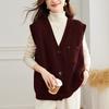 Women's Original Artistic Knitted Vest Appliqué Paneled Solid Color Cotton Thread Hollow-Out Sleeveless Pullover V-Neck Vest
