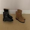 All Leather~ Belt Buckle Medium Boots British Pants Pants Martin Boots Women's Thick Heel Knight Boots Western Pile Boots