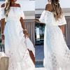Temperament Slim Dress Summer New Style European and American Fashion off-Shoulder Stitching Lace Dress