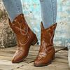 Fashion Autumn Winter Split Leather Women Boot Fashion Embroidery PointedToe Boots for Women Mid-calf Boots Botines Mujer Knight Boots