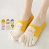 2 זוגות חמש אצבעות נשים חיות הדפס קריקטורה יפנית גרביים חמודים מזדמנים משובץ פרחוני בציר נקבה גרב