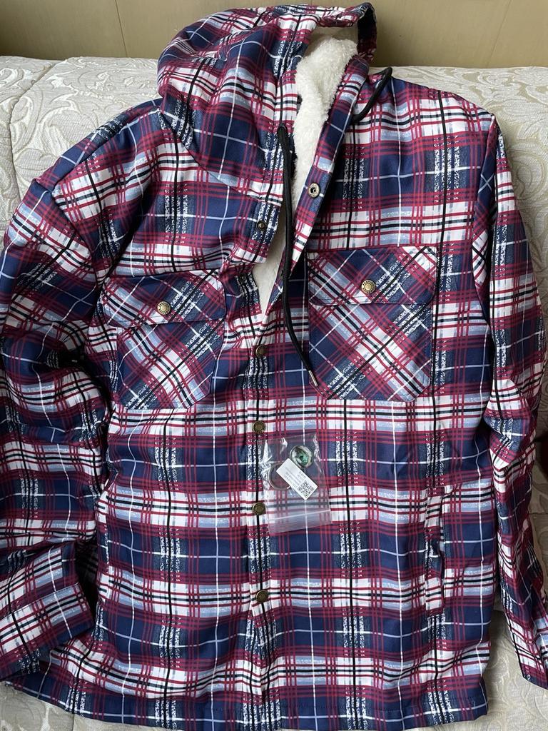 חולצה משובצת משובצת כפתור מרופד לגברים הוסף קטיפה לשמירה על חום מעיל עם ברדס