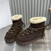 חורף מגפי שלג שטוחים חדשים לנשים ראש עגול זמש רצועה קדמית סוליה עבה מגפיים קצרים עמידים ללבוש נגד החלקה