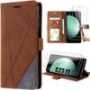 Coque pour Samsung Galaxy S23 - BOOLING - Rabat Cuir Synthétique Intégral - Marron - Semi-rigide - Silicone, PU