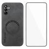 WANLONFENG YBP Series For Samsung Galaxy A05s 4G Magnetic Case with Tempered Glass Film PU Leather+TPU Phone Cover Large Cutout