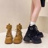 Biker Lace-up Women's Ankle Boots Short Shoes for Woman Sports Combat Chunky Punk Style with Laces Round Toe Footwear Booties Pu