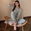 Elevate your loungewear collection with this elegant women's pajama set, featuring a striking green leopard print. Perfectly crafted for the transitional seasons of autumn and spring, this set includes a long sleeve top and pants, both made from a luxurious and lightweight satin fabric. The fabric combines the softness of ice silk with the luxurious feel of artificial silk, providing comfort and style in equal measure. Whether you're winding down in the evening or enjoying a lazy weekend morning, this pajama set promises a chic and comfortable experience.