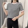 Summer Versatile Short Tops Female Retro Color Blocking Striped Waisted Knit Shirt Tide Casual Essential Comfort and Style Slim Fit Pullovers Tees