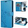 Coque de Protection - BOOLING - Samsung Galaxy A17 4G/5G - Effet Cuir Bleu Papillon Fleur - 2 Vitre
