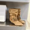 Sheepskin version~ pointed cat heel fold pile boots women's autumn and winter new fashion casual western boots versatile short boots