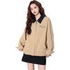 Turn-down Collar Panelled Contrast Jackets Women Casual Loose Zipper Long Sleeved Coat Female Autumn High Street Outwear