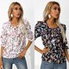 Women's Spring V-neck Printed Five-quarter Sleeve Blouse Shirt