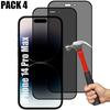 Protecteur d'écran - Lot de 4 - iPhone 16 Pro Max - Verre trempé - Anti-espion - Noir