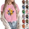 Women's Fashion Casual Printed Round Neck Short Sleeved Pullover T-Shirt Top