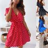 Summer High Waist White Dress Sweet V-Neck Ruffle Short Sleeve Dot Dress Casual Cotton Linen Beach Mini Dress Vestidos 25628