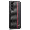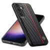 •【Carbon Fiber PU Leather with Red Stripe】 The case combines sleek carbon fiber PU leather with a fine-texture PU leather section,accentuated by a striking red vertical stripe,creating a modern and stylish appearance