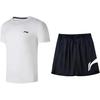 Li Ning Plain Logo Breathable Quick-Dry Round Neck Sports Short Sleeve T-Shirt And Shorts Set Men Tops White Black ATSS447-3+AKSS481-2