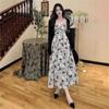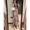 Summer 2025 Fashion Print Bufferfly Casual Long Dress Women Fashion Chic Ruffled Square Collar Dress Korean Elegant Bodycon Robe