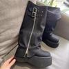 Winter Women Biker Boots Fashion Belt Buckle Ladies Elegant Platform Long Pipe Booties Casual Women's Knee High Booties D528