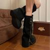 2024 Winter Women Biker Boots Fashion Belt Buckle Ladies Platform Long Pipe Booties Casual Women's Knee High Zipper Warm Booties