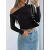 European and American fashion autumn sloping shoulder design, long sleeved slim fit women's top