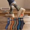 7 Pairs Of Men's Trendy Striped Pattern Crew Socks, Breathable Comfy Casual Unisex Socks For Men's Outdoor Wearing
