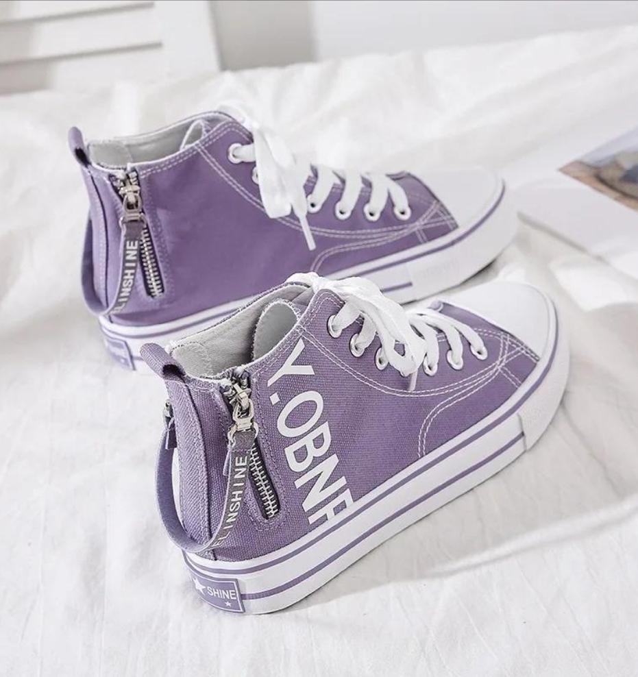 Bestselger Dame Lerret Flats Vår og Høst Nye Høy Topp Mote Dame Glidelås Pustende Stoff Fritids Lerret Sneakers