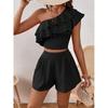Women's Summer Temperament One-shoulder Ruffle Short Top Wide-leg Trousers Suit