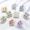 Personalised Sweet Cool Style Colourful Zirconia Four-Leaf Clover Earrings Niche Design Ins Fashion Flower Earrings
