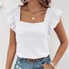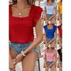 Spring and Summer New Square Neck Ruffled Women Shirt Tops Elegant Slim Fit Solid Flying Sleeve Blouse Women Loose Casual Shirts Female Clothing 26486