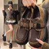 Loafers women's spring and autumn new platform heightening retro Velcro small leather shoes thick heel British commuter shoes