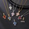 Fashion T-square Zircon Pink Cross Necklace, Personalized European and American Street Hip-hop Trend Jewelry