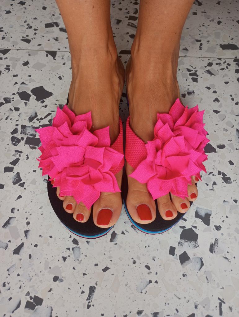 Perfekt for sommeren! Jeg kjøpte disse flip-flopsene uten høye forventninger og ble rett og slett positivt overrasket! De er ikke bare vakre og utrolig kule med blomstene og regnbuefargene, men også veldig komfortable. Den tykke sålen føles stabil på foten, og gjør ikke vondt selv etter langvarig gåing.. Jeg elsker at de er helt i sommerstilsandalettenes snitt – avslappet, men med en spesiell touch som ikke kan overses. Jeg fikk mange komplimenter for dem allerede den første dagen jeg brukte dem.! Anbefales på det varmeste for den som leter etter en lett, fargerik og komfortabel flip-flop for sommeren, til stranden eller til og med hjemme. Jeg elsket den virkelig 💖
