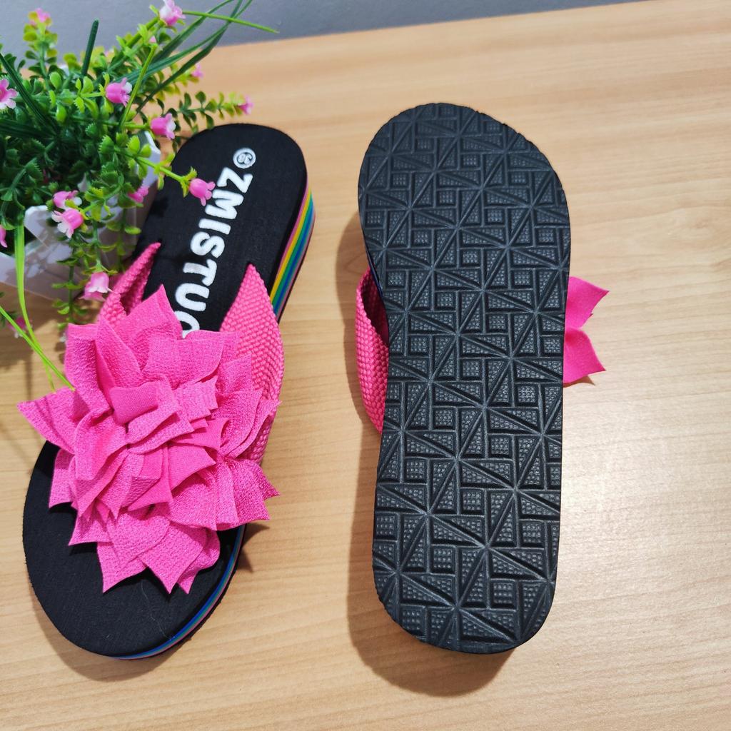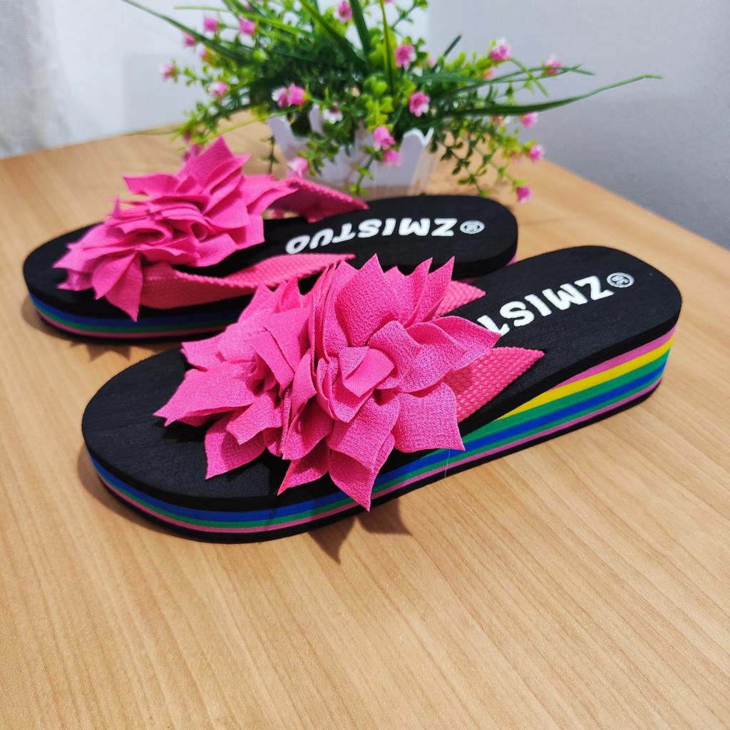 Sommerflip-flops med regnbueblomster Tykksålede Kule flip-flops Fargerike såler Damesko og Casual strandtøfler