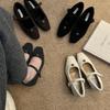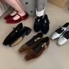 French temperament thick heel single shoes women's one-word buckle belt 2025 spring retro woolen square head shallow mouth Mary Jane shoes women