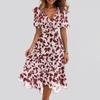 Women's Fashion Casual V Neck Short Sleeve Ruffled Vintage Printed Dresses