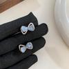 Elegant Blue Bow Zircon-Studded Korean Earrings for Women