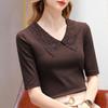 New Women's Clothing Elegant Fashion Loose Round Neck Simplicity Pullovers Zipper Striped Patchwork Button Summer T-Shirts