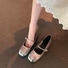 Sheepskin version~ Genuine leather silver light mouth with flat bottom inner height increase Mary Jane single shoes women's small leather shoes