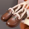 Fashion GKTINOO Women Loafers Genuine Leather with Warm Plush Shoes Square Heels Classic Fashion Winter Leather Shoes Women Big size 42